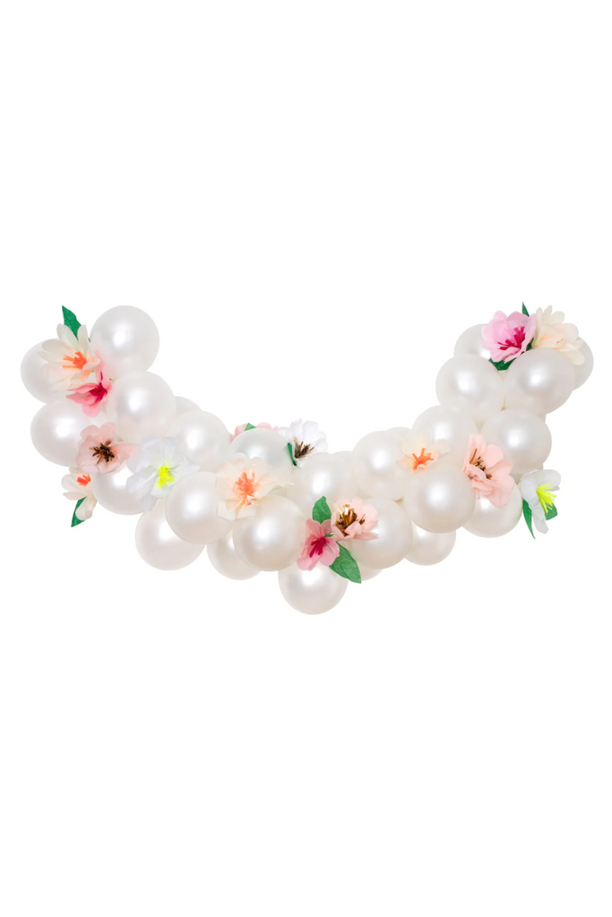 This amazing kit features 40 pearl balloons and 16 pretty paper flowers