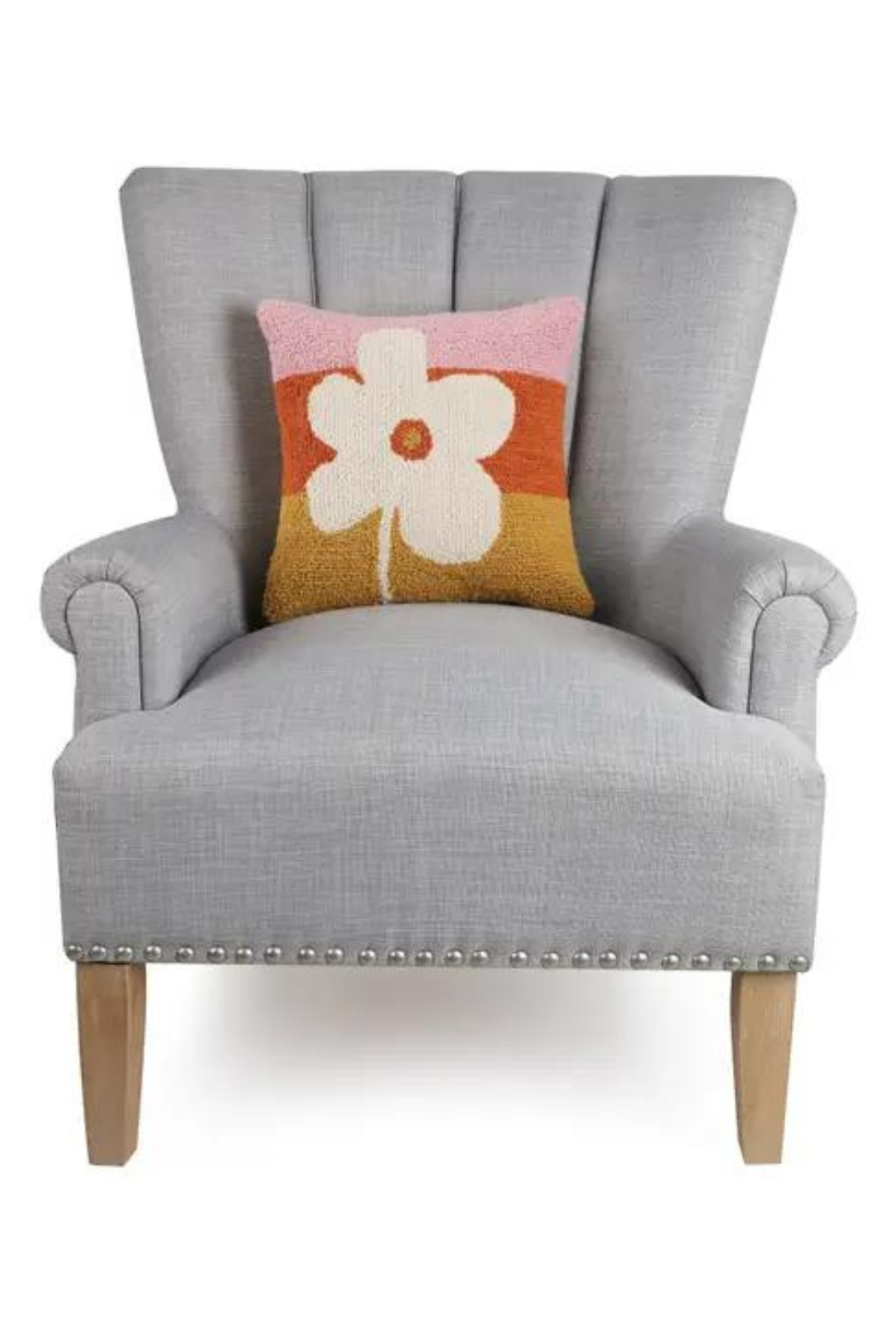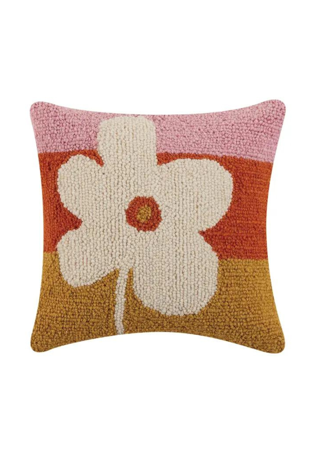 ★100% wool hooked square accent pillow ★100% velvet backing ★Includes polyester insert, zipper closure ★14X14" throw pillow ★Designed by Ampersand