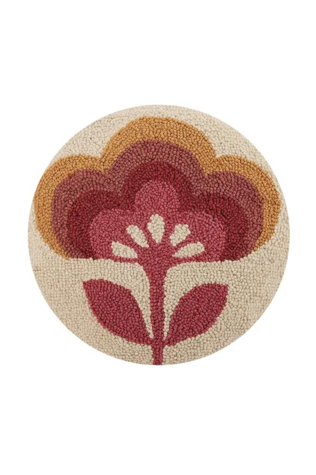 ★100% wool hooked pillow ★100% velvet backing ★Includes polyester insert, zipper closure ★14"RD throw pillow