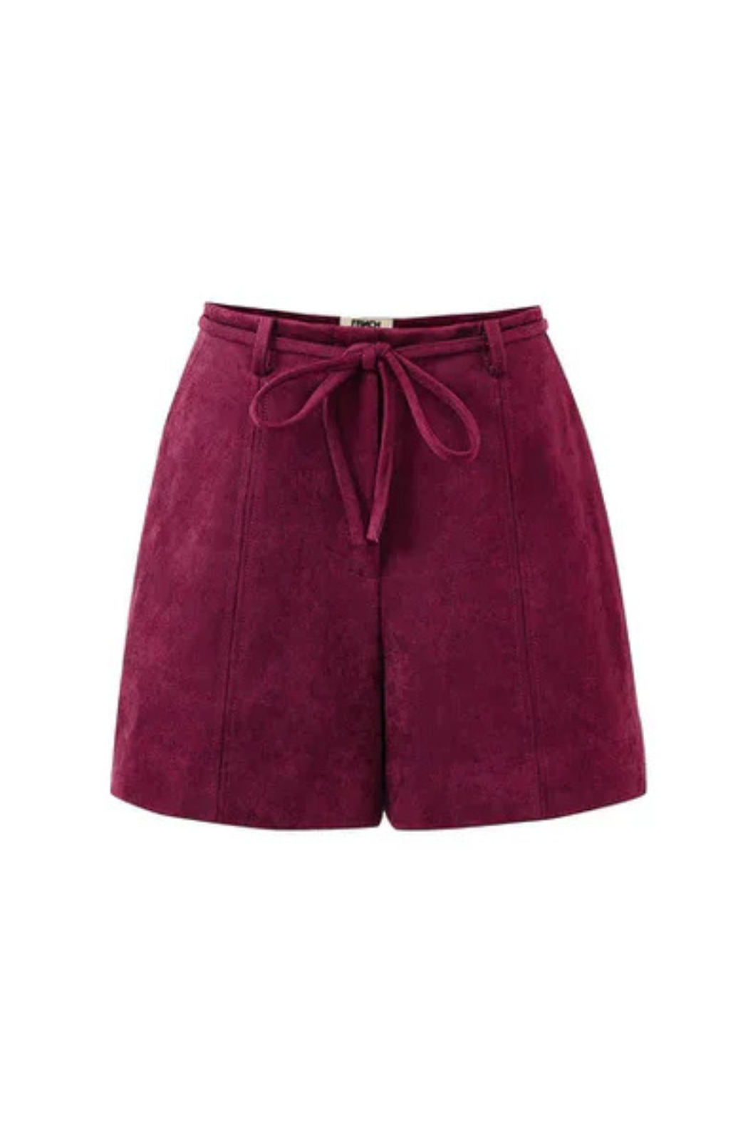 The Ginette Suedette Shorts are crafted from a luxurious suede-like fabric that offers a smooth, elegant finish. Designed with a concealed zip and button closure, these shorts provide a clean and polished look. The tie waist adds a flattering touch, while the functional pockets combine style and practicality for a chic silhouette. Perfect for elevating your wardrobe with understated sophistication.
