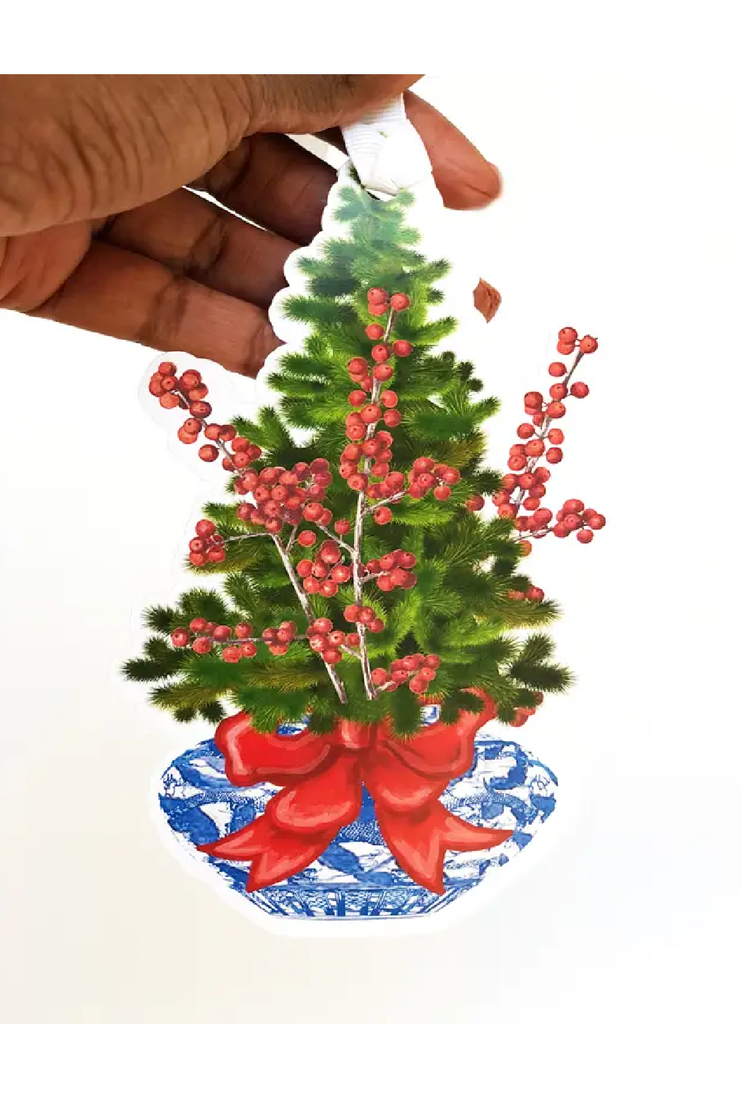 Our beautiful Christmas Tree Ginger Jar gift tags are printed on 110lb white card stock.