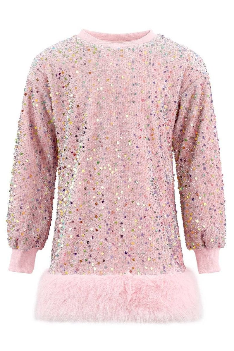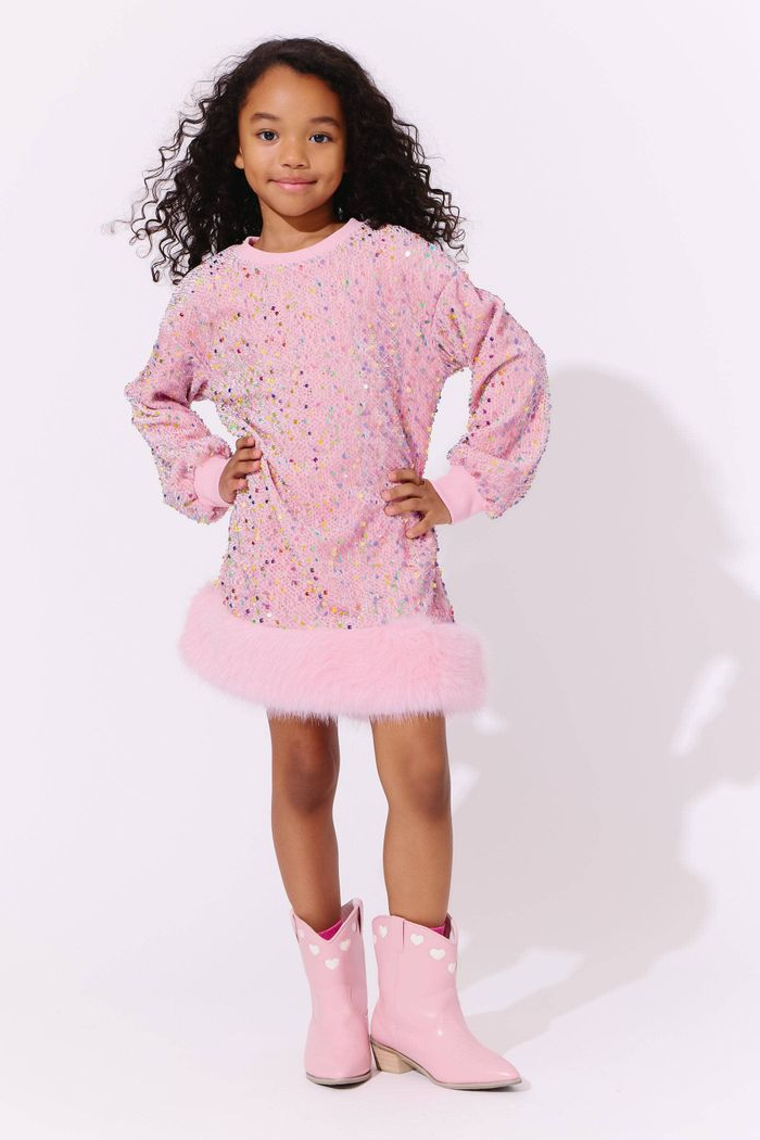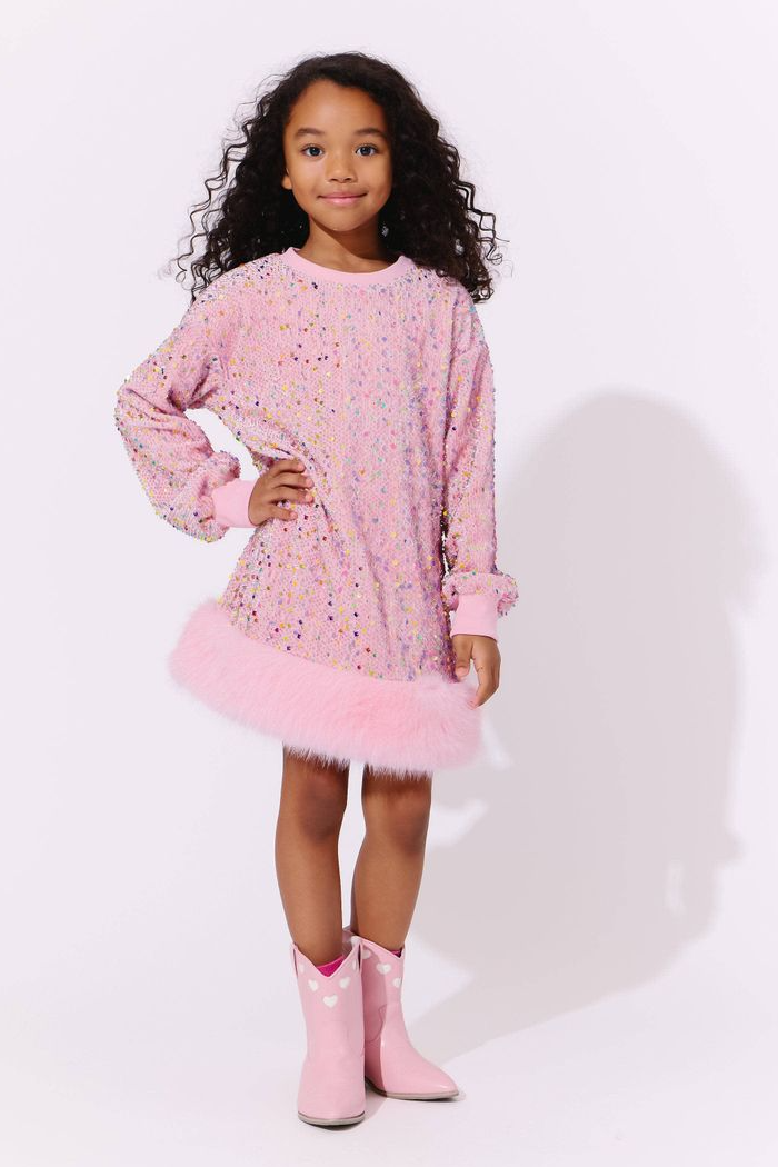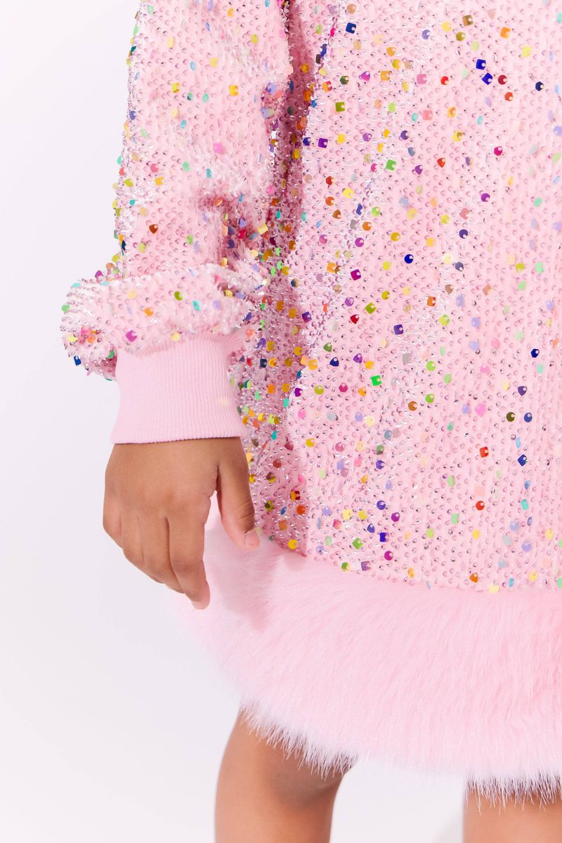 Soft faux fur trim along the hem adds a fun, playful touch, perfect for special occasions