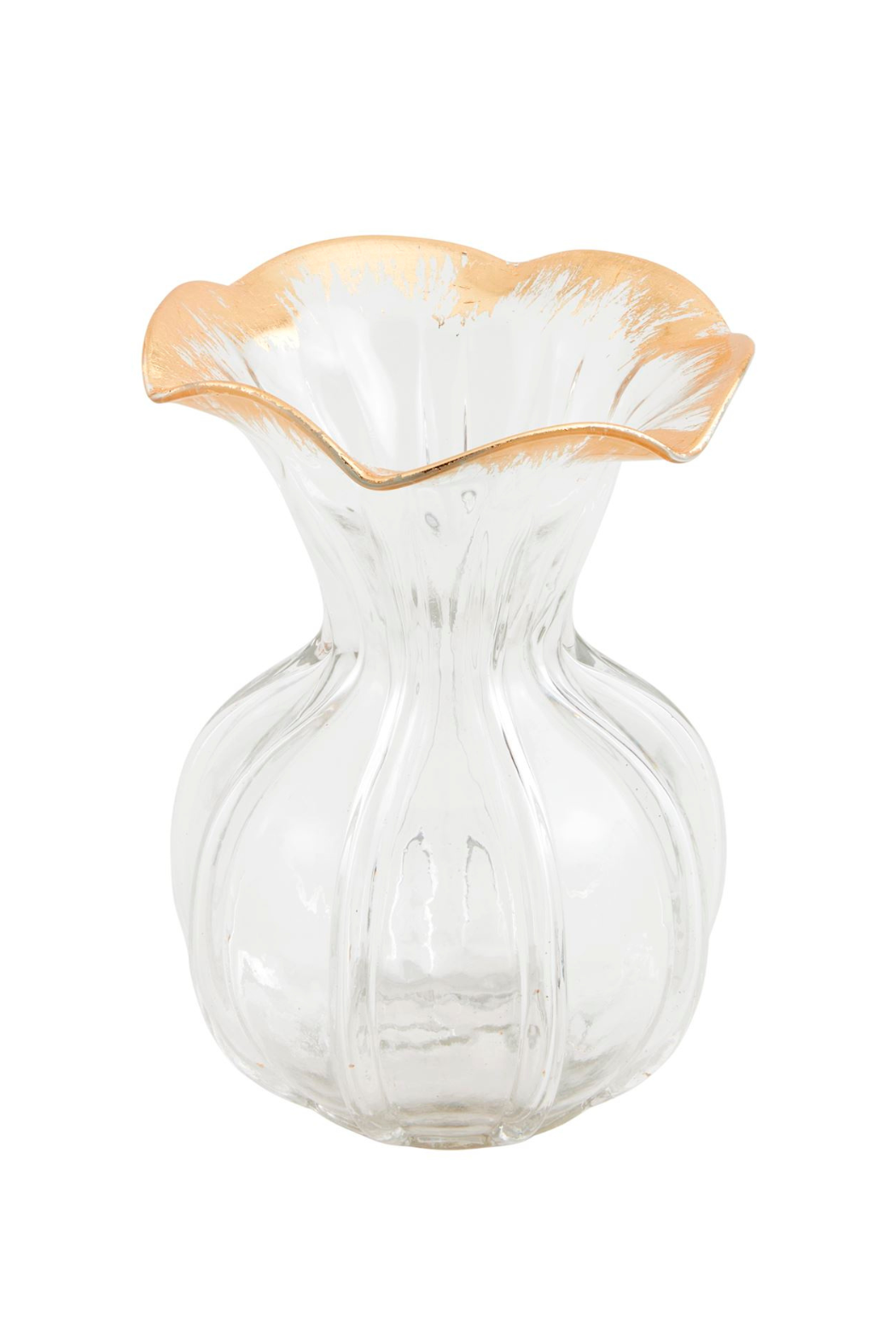 Textural glass vase features fluted hand-painted ruffle rim.