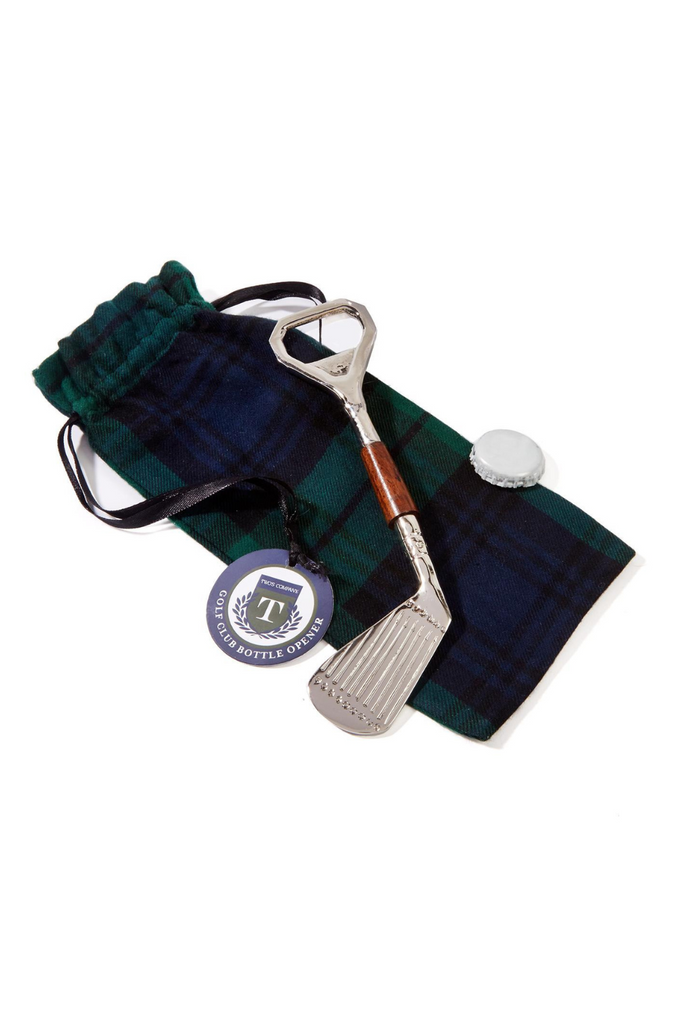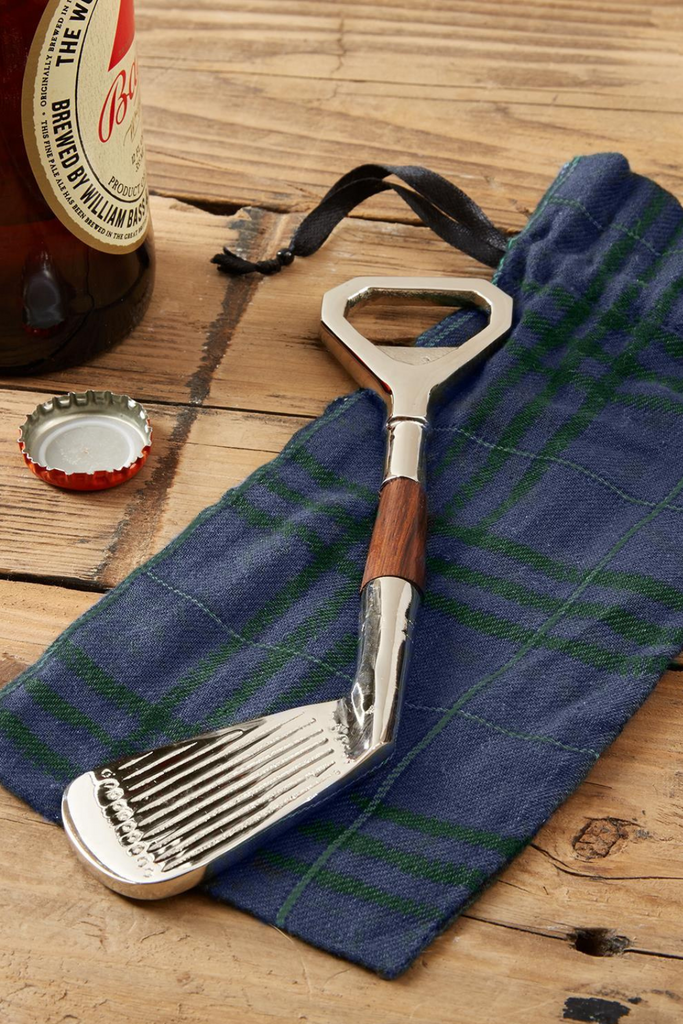 Golf Club Bottle Opener in Plaid Gift Pouch