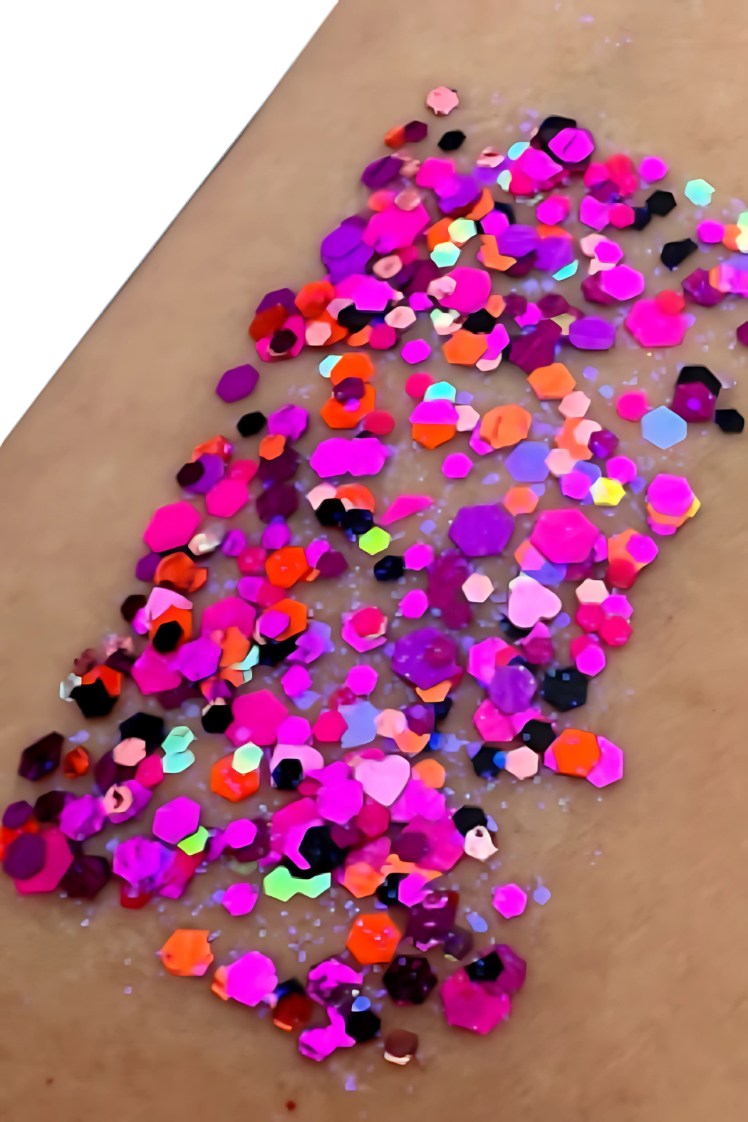 Bolt Balm is easy-on, easy-off glitter that goes on with a quick swipe of a finger or spatula applicator and comes off just as easily with a lint roller or tape.