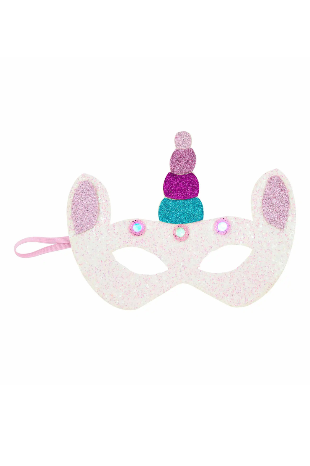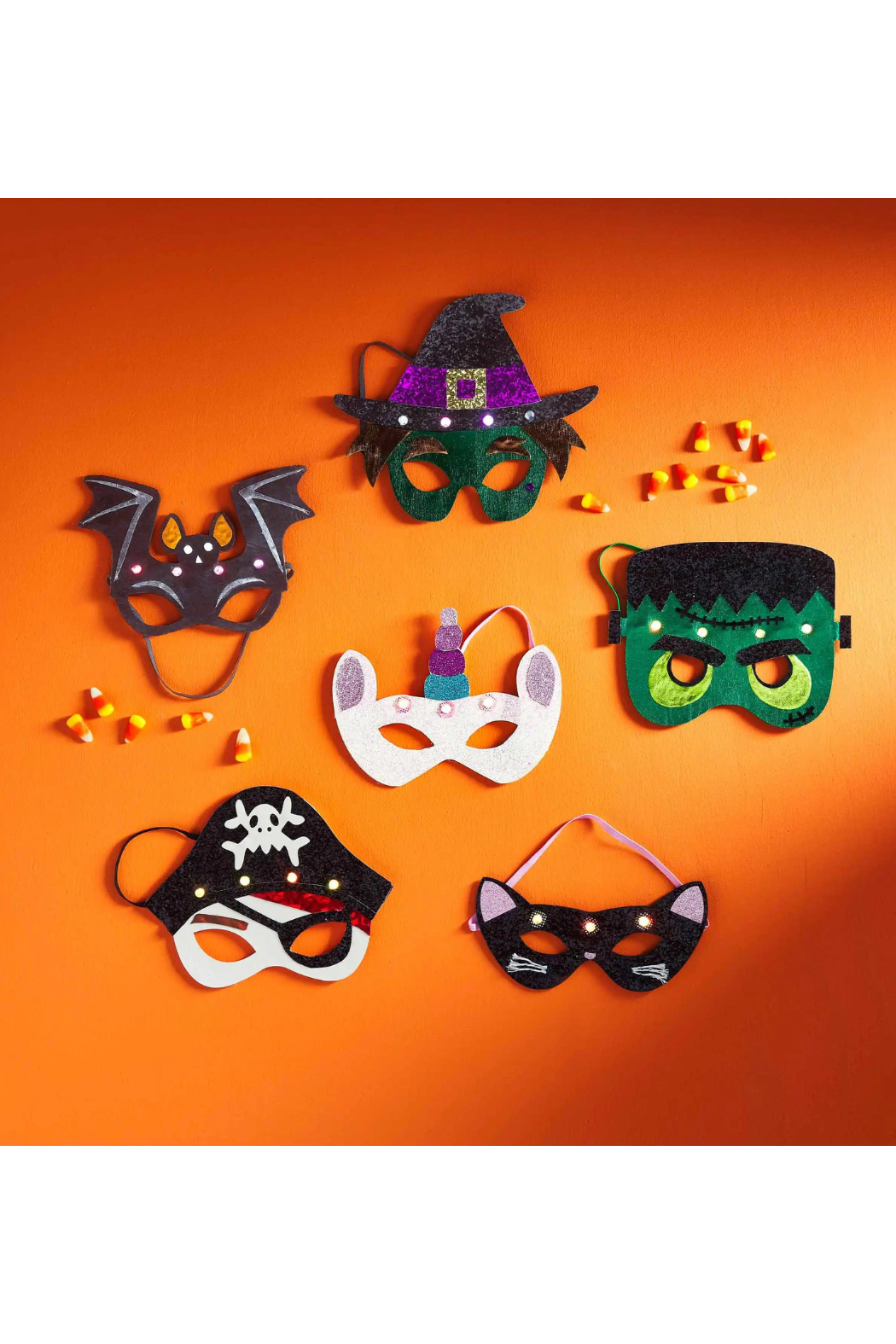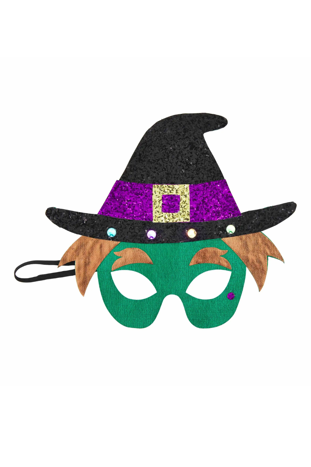 Stock your costume closet with our Kid's Witch Mask. The mask features fun glitter felt fabric. The mask also features LED light-up. The mask works with included batteries. Add this mask to your head with the elastic strap. This mask is intended for children ages three and older.