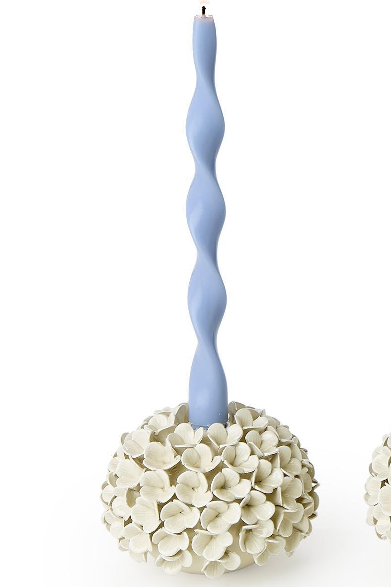 Bring versatile elegance to your dècor with the White Hydrangea Flower Bud Vase / Taper Candle Holder. Crafted from fine porcelain and delicately sculpted with hydrangea-inspired details, each piece can be used to display fresh blooms or hold taper candles. Perfect for weddings, dinner parties, or everyday styling.