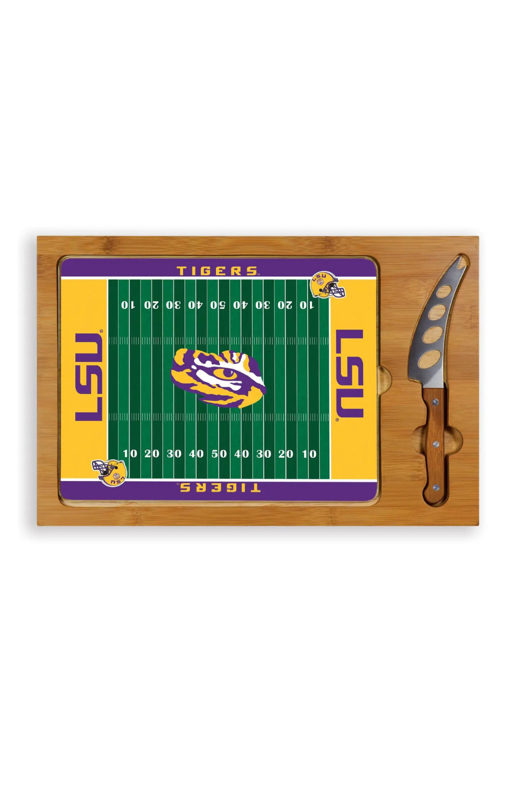 Modern and natural lines merge with the icon, a beautiful rectangular glass cutting board made from rich parawood and bamboo with a tempered glass tray and a carved-out section to snugly secure the included stainless steel fork-tipped cheese knife with a wooden handle. You can also use this handsome cutting board set as a cheese board or serving tray.