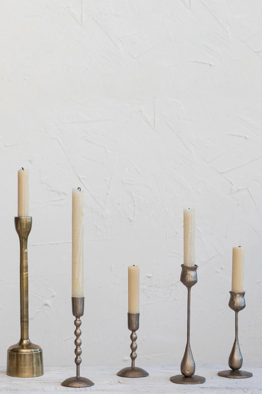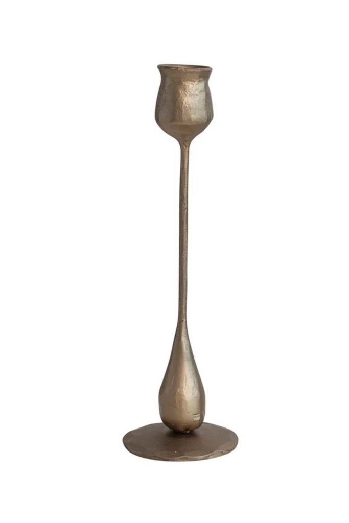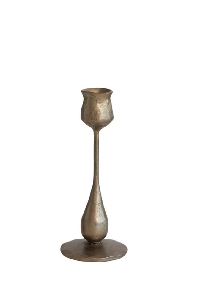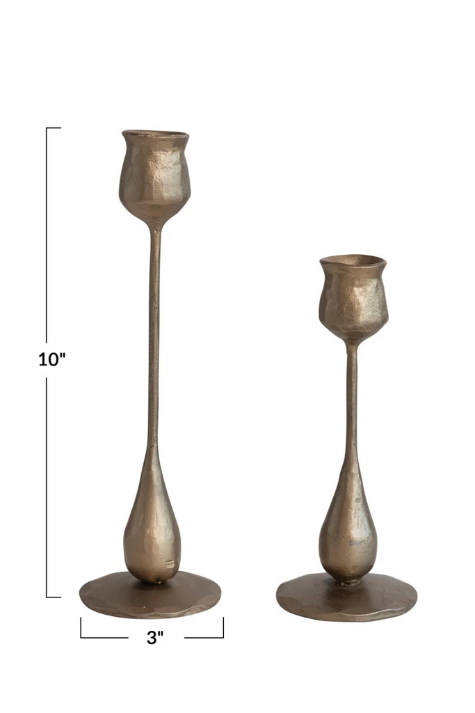 Hand-Forged Iron Taper Holders, Antique Brass Finish
