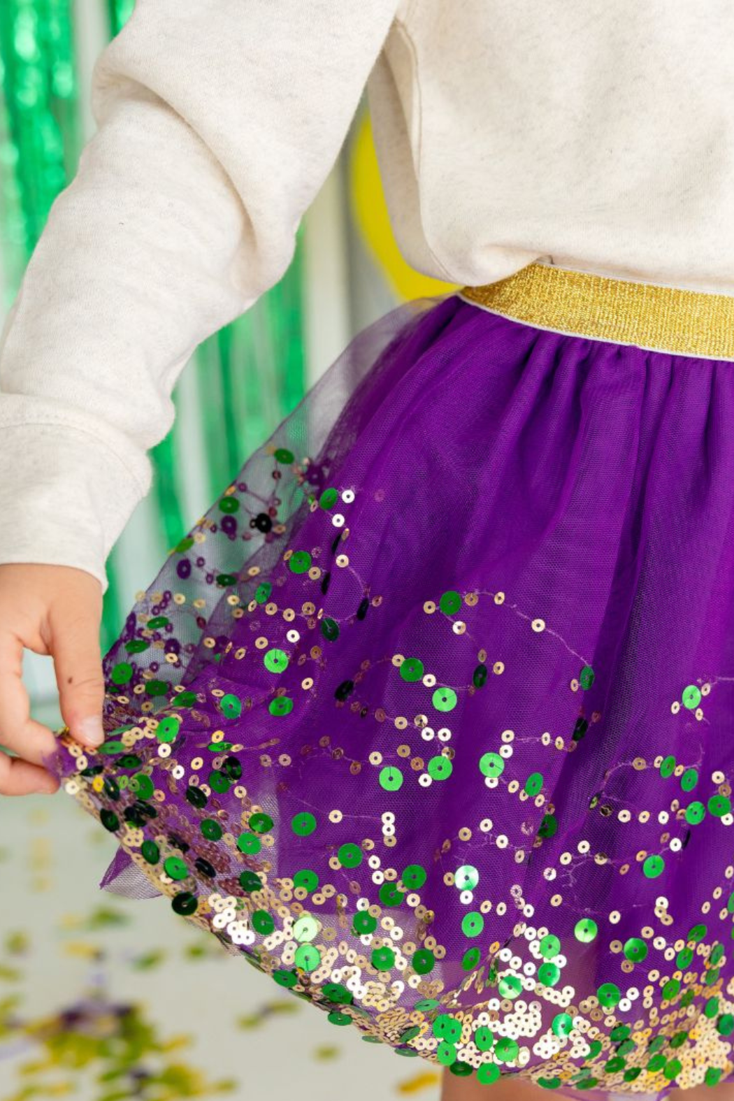 The Mardi Gras Confetti Tutu is a fun skirt and dress up tutu for any Mardi Gras celebration or everyday wear!