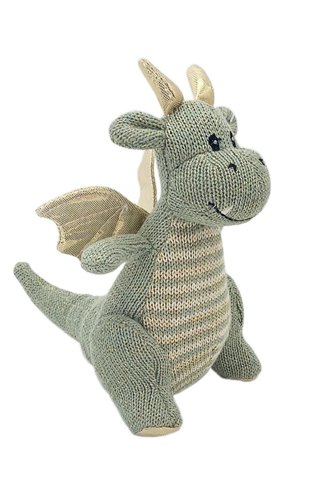 We've added to the mythical magical collection.... cuddle knit rattle! The two tone knit, and striped belly add texture dimension giving this toy a sophisticated look. Soft chime and fabric texture enhances babies senses.