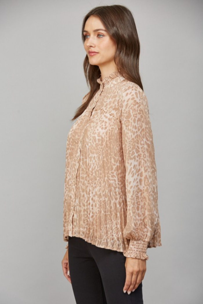 ANIMAL PRINT CHIFFON WITH LUREX PLEATED BLOUSE