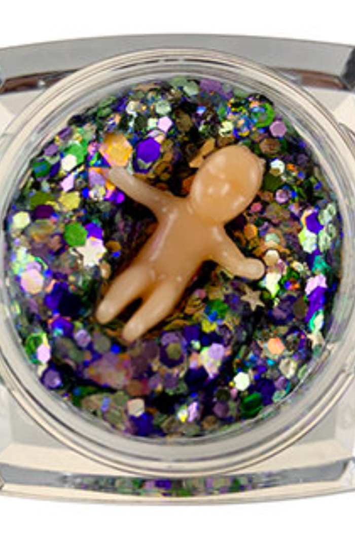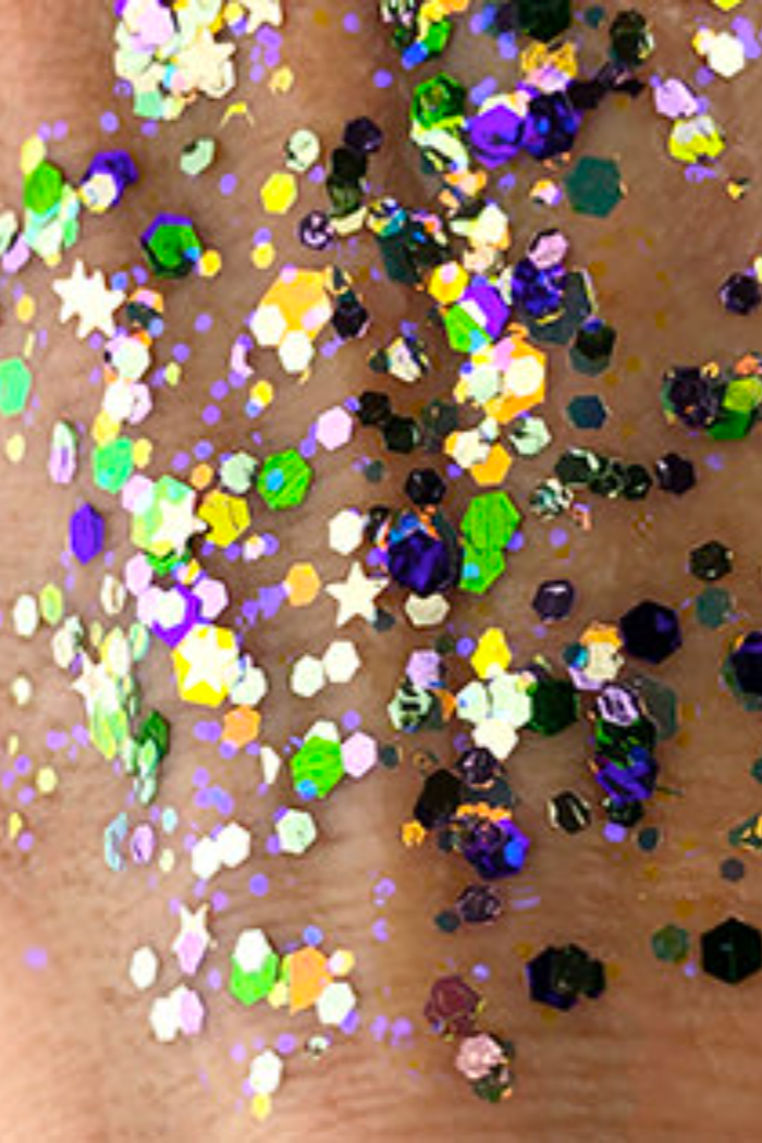 Bolt Balm is easy-on, easy-off glitter that goes on with a quick swipe of a finger or spatula applicator and comes off just as easily with a lint roller or tape.