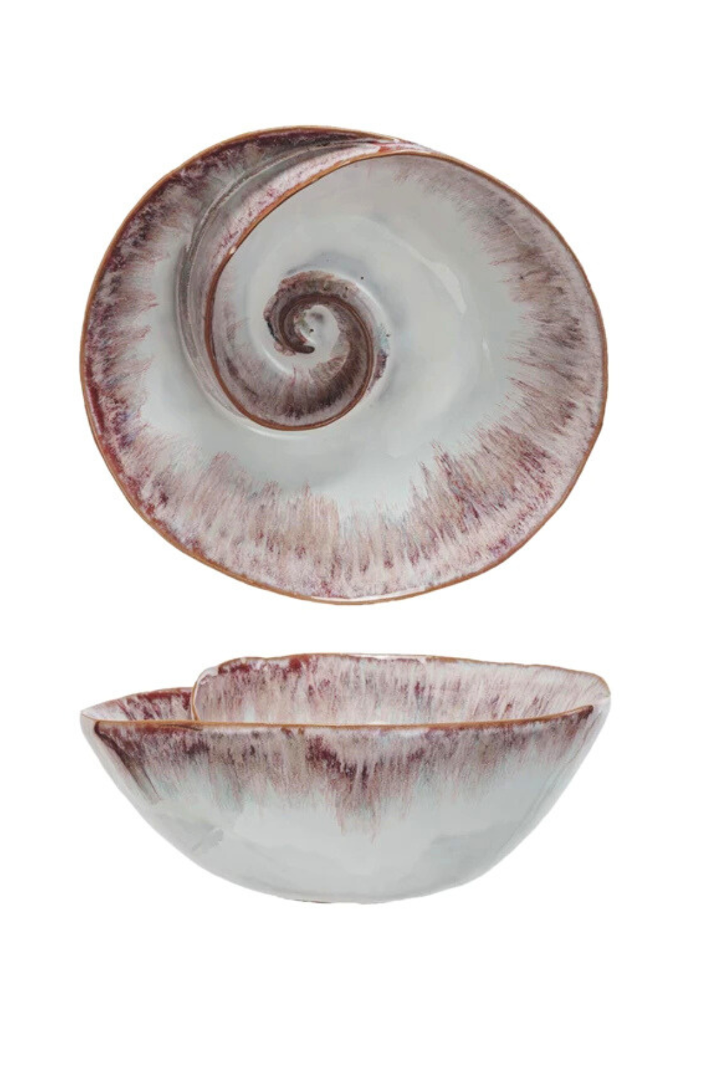 8-3/4"L x 7-3/4"W x 3-1/4"H Stoneware Nautilus Shaped Bowl, Reactive Glaze, White & Berry Color (Each One Will Vary)