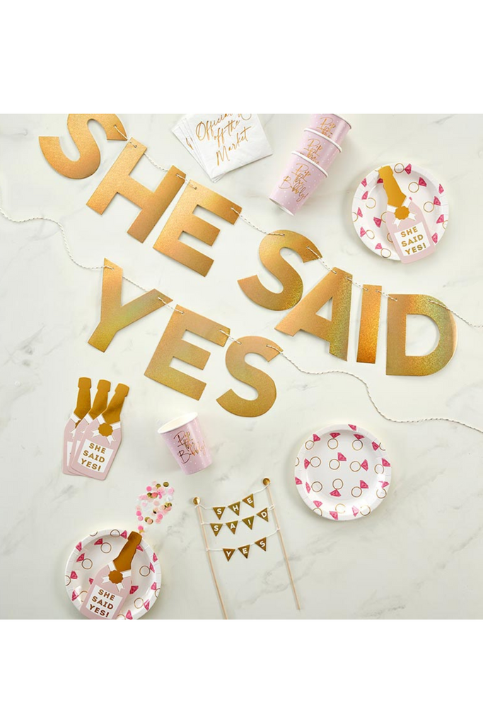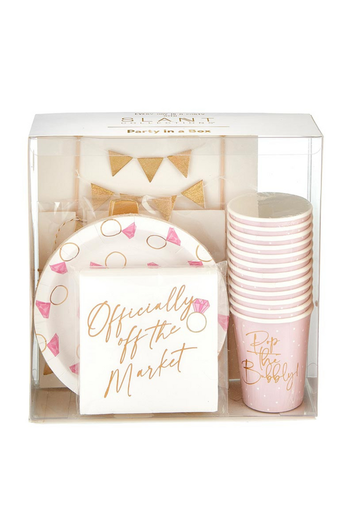 One stop shop! This party in a box includes everything you need for a fabulous party! Set includes - 1 paper garland, 1 cake topper, 12 ct paper cups, 12 ct paper plates, 12 ct paper table accents, and 20 ct beverage napkins.