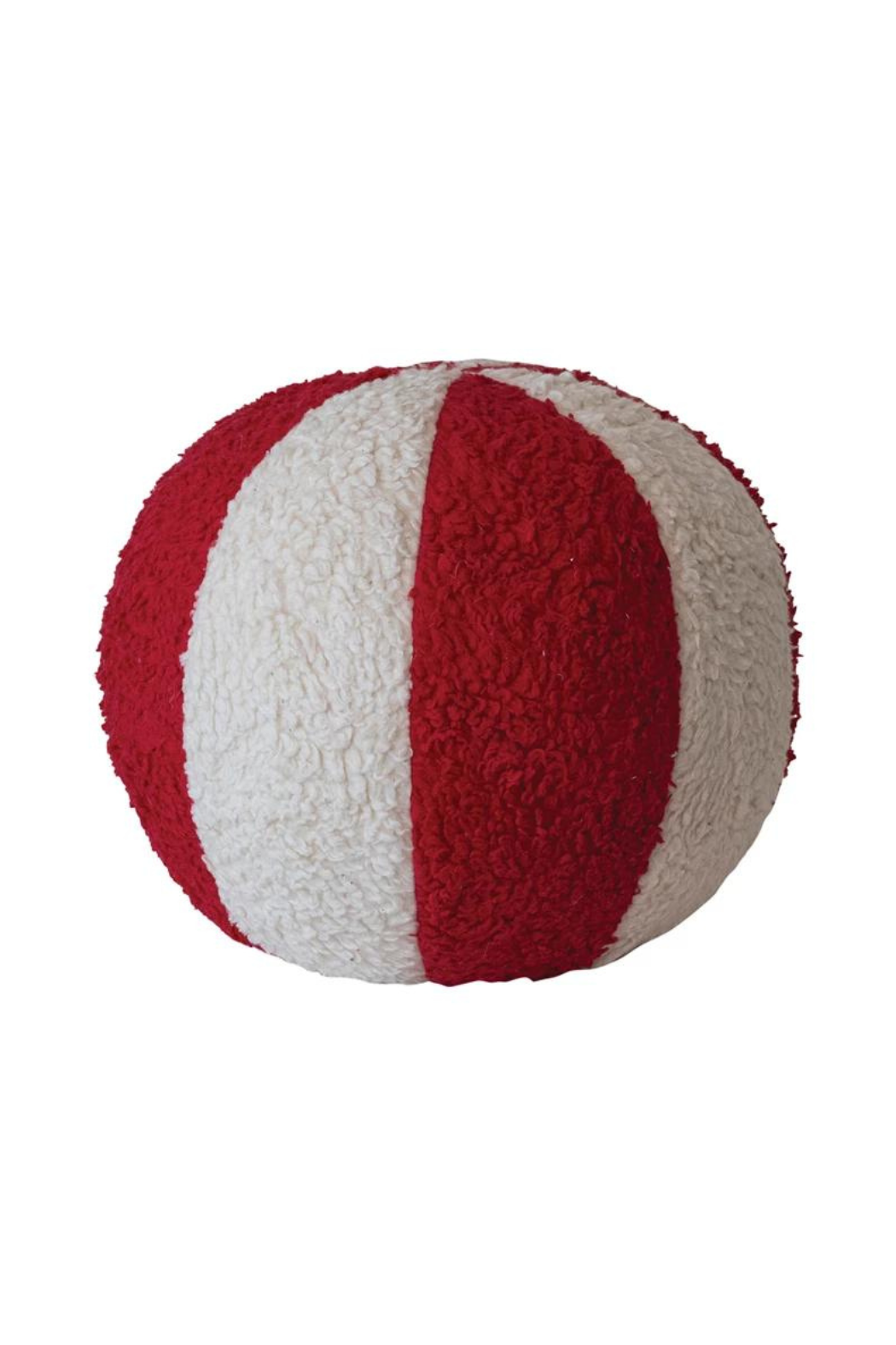 10" Round Cotton Sherpa Peppermint Candy Shaped Orb Pillow, Red & White