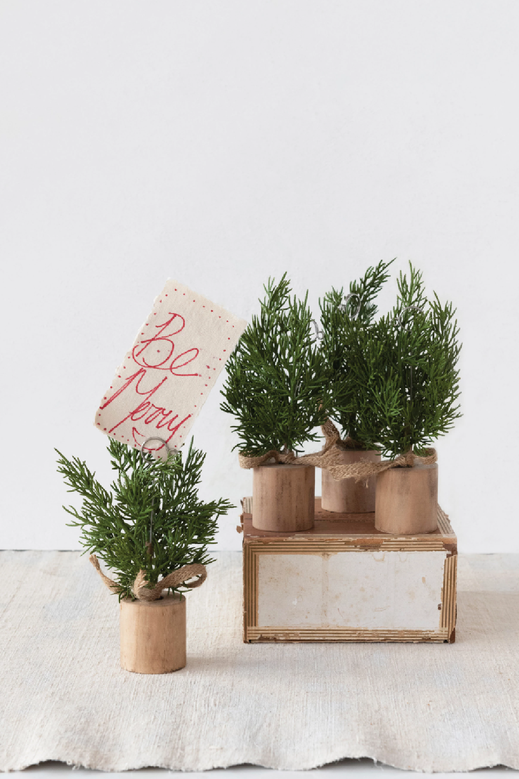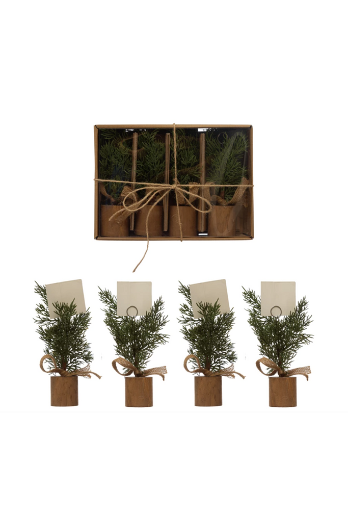 6"H Faux Pine Tree Place Card/Photo Holders with Wood Bases
