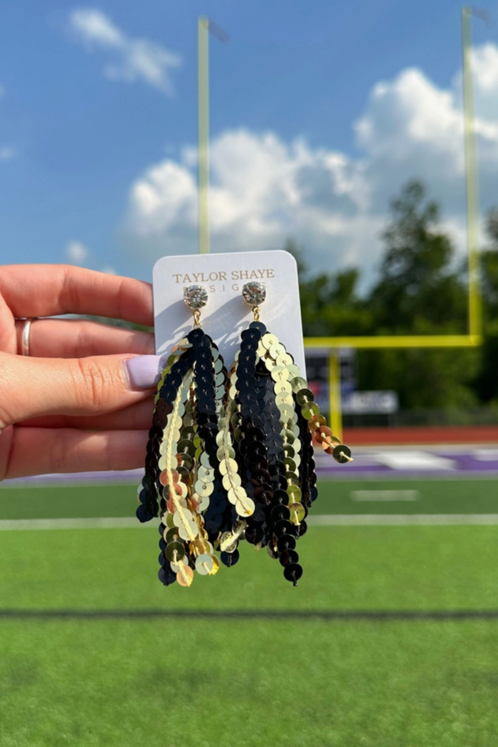 Gameday sequin tassel earrings.