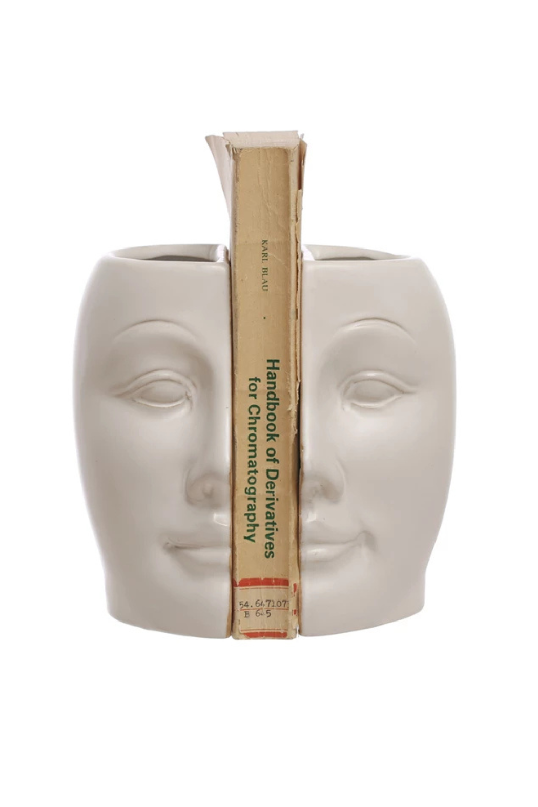 These sculpted stoneware face vases/bookends are versatile and artistic pieces that suit modern, eclectic, or bohemian styles.