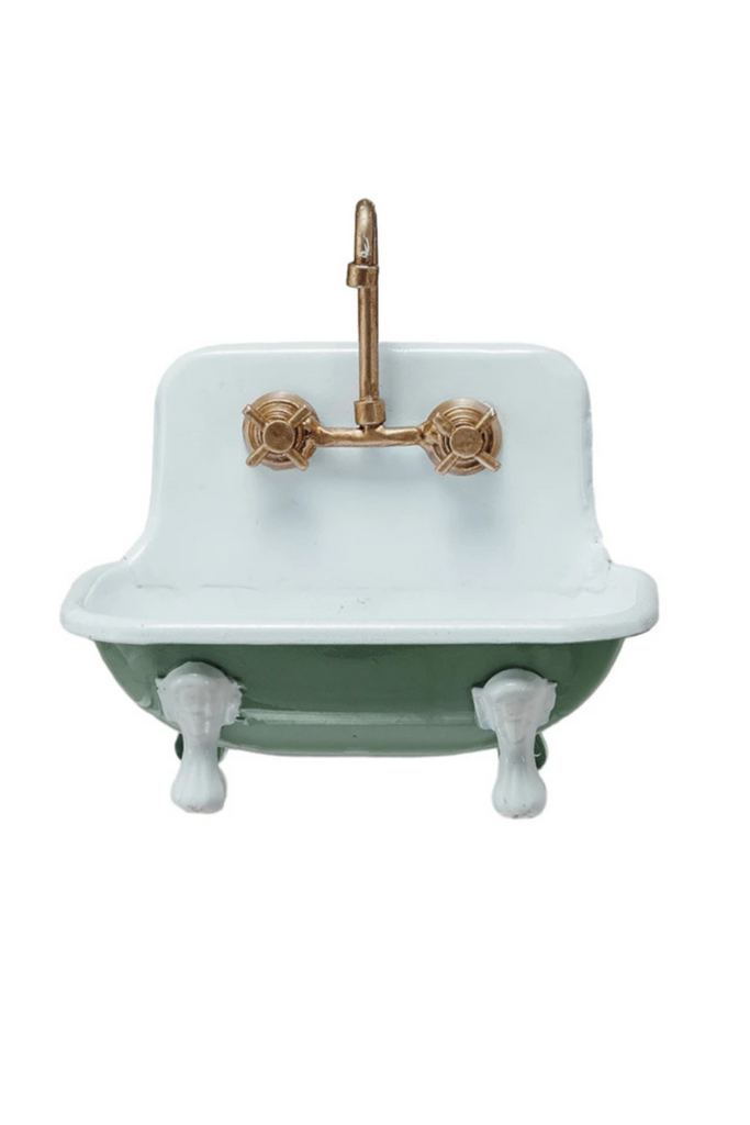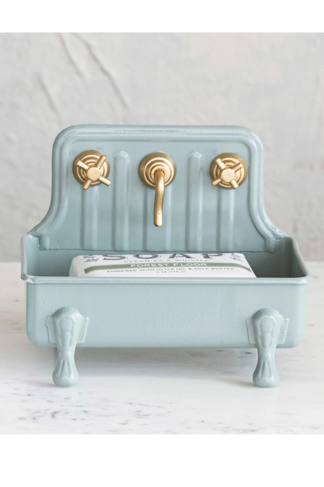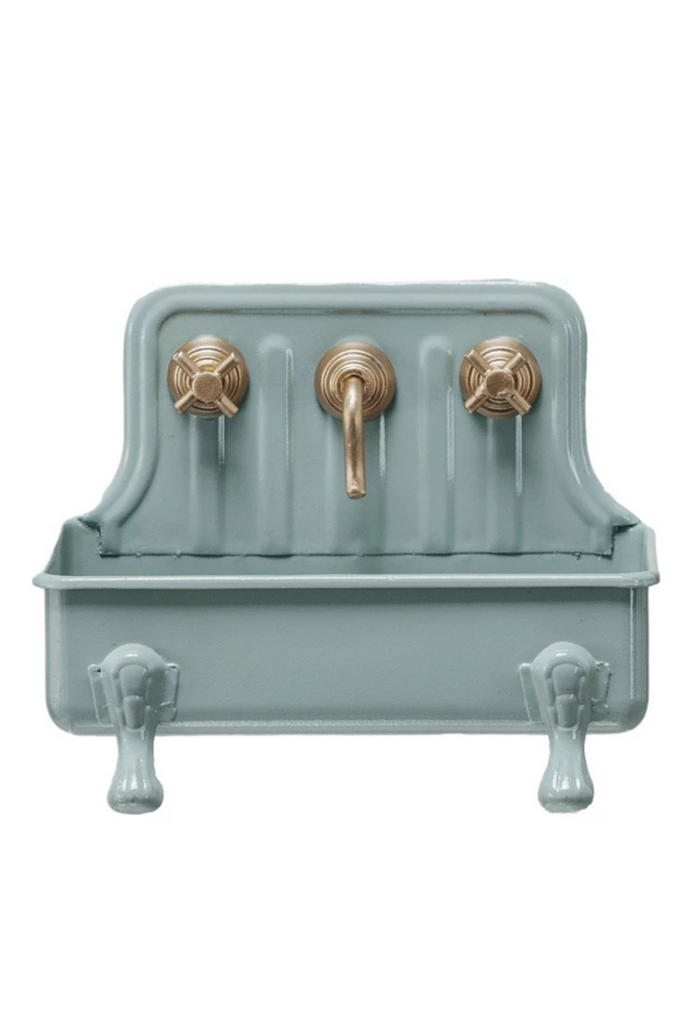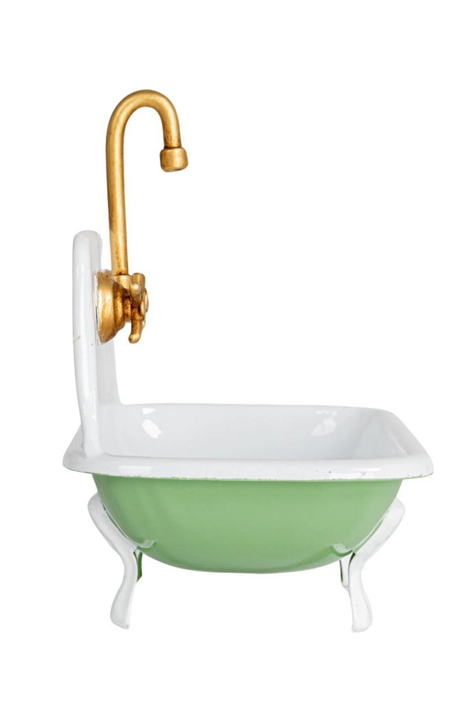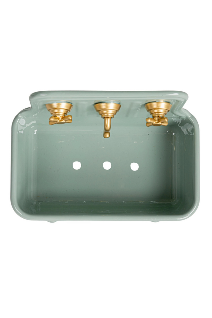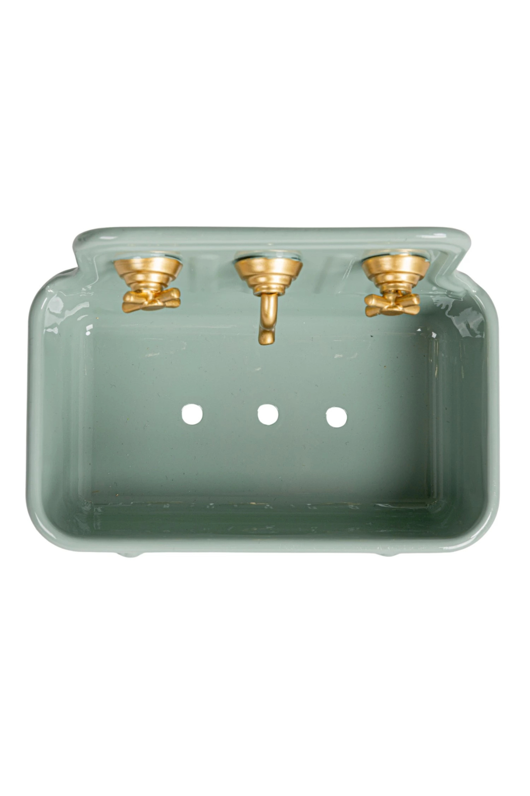 Metal Sink Soap Dish w/ Faucet, Green, White & Gold Finish