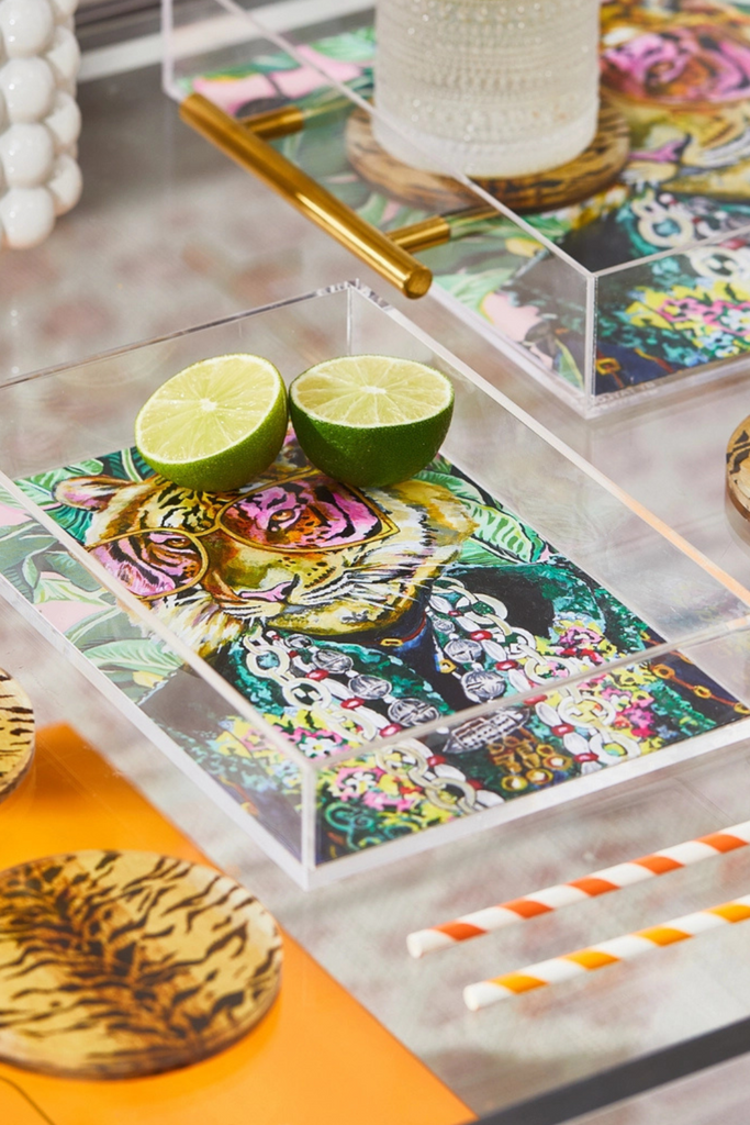Toby the Tiger is here to brighten your day! Serve your treats in style with this cheeky, acrylic tray featuring original artwork by Heather Perry of Drunk Girl Designs. Make your summer snack time extra cool with Toby!