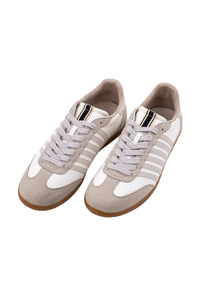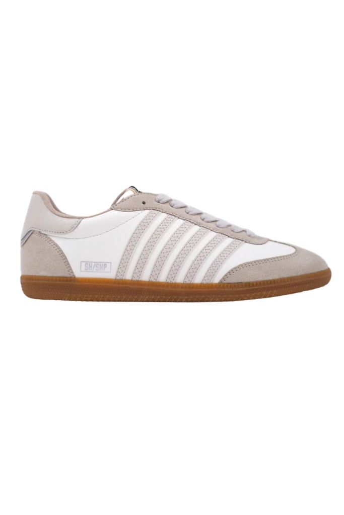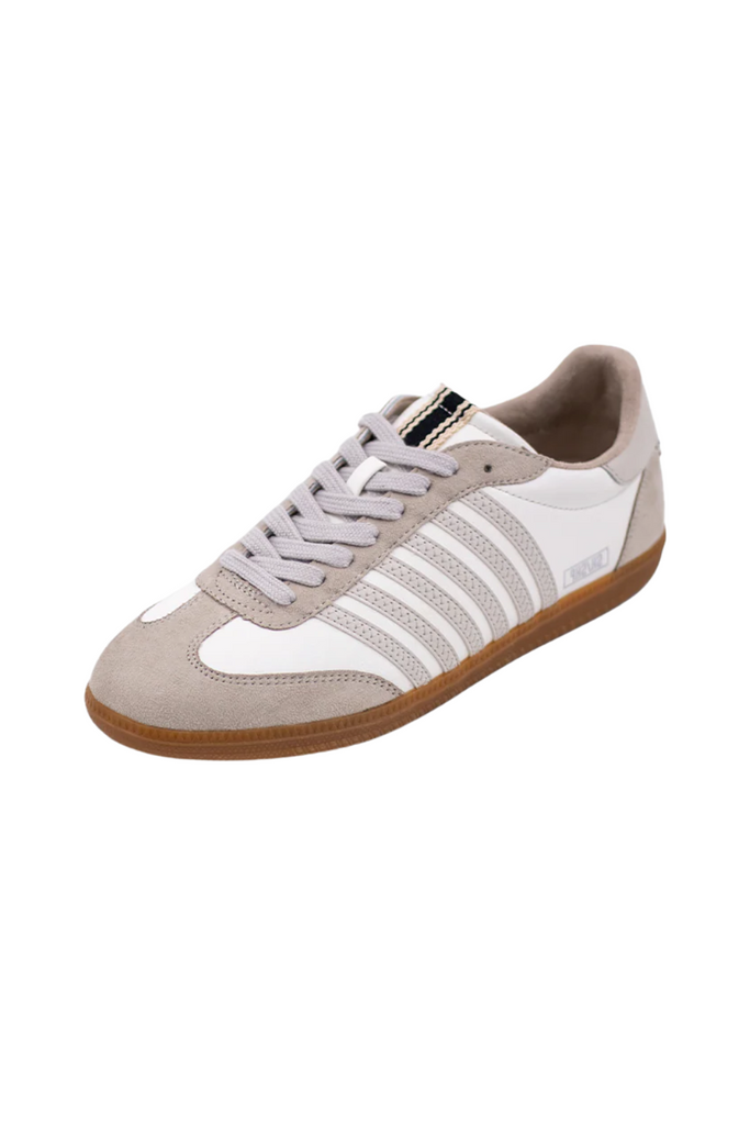 STEVIE steps into the spotlight with a refined mix of crisp white, warm bone, and soft beige. Side-stitched stripes add texture and depth, while suede overlays bring a touch of luxury. Set on a timeless gum sole and finished with a metallic silver heel tab, it's everyday versatility with an edge of modern sophistication!