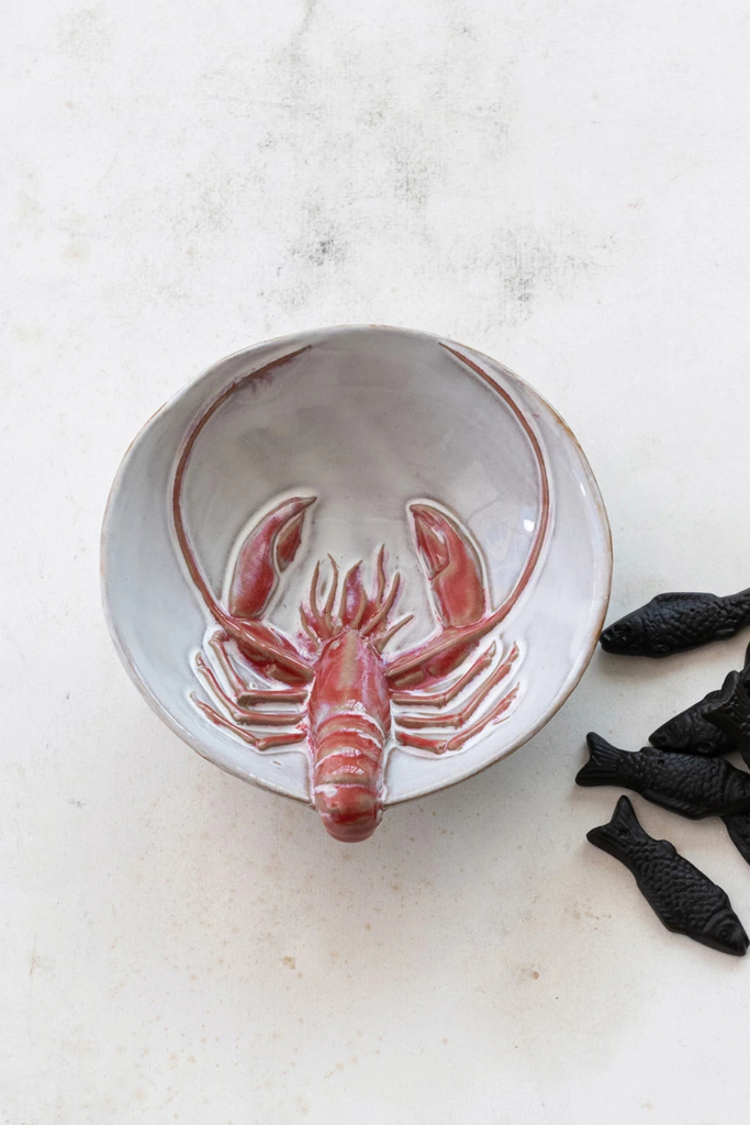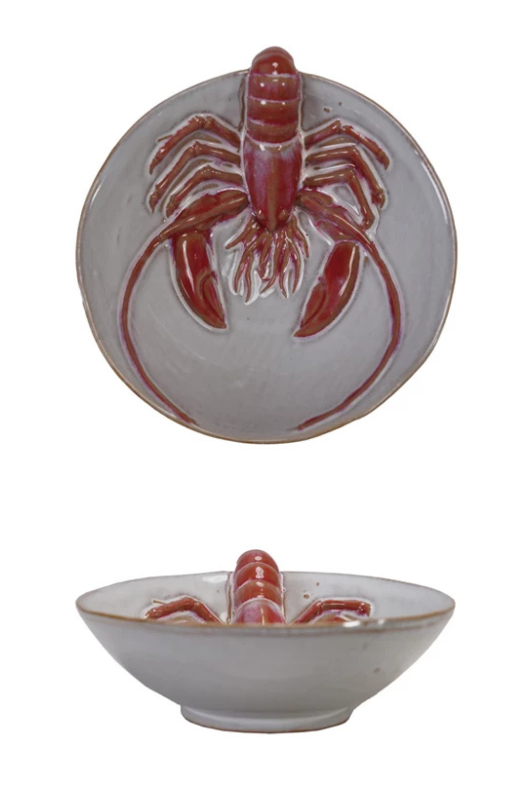 5-3/4"L x 5-1/4"W x 2"H Stoneware Bowl w/ 3D Crawfish