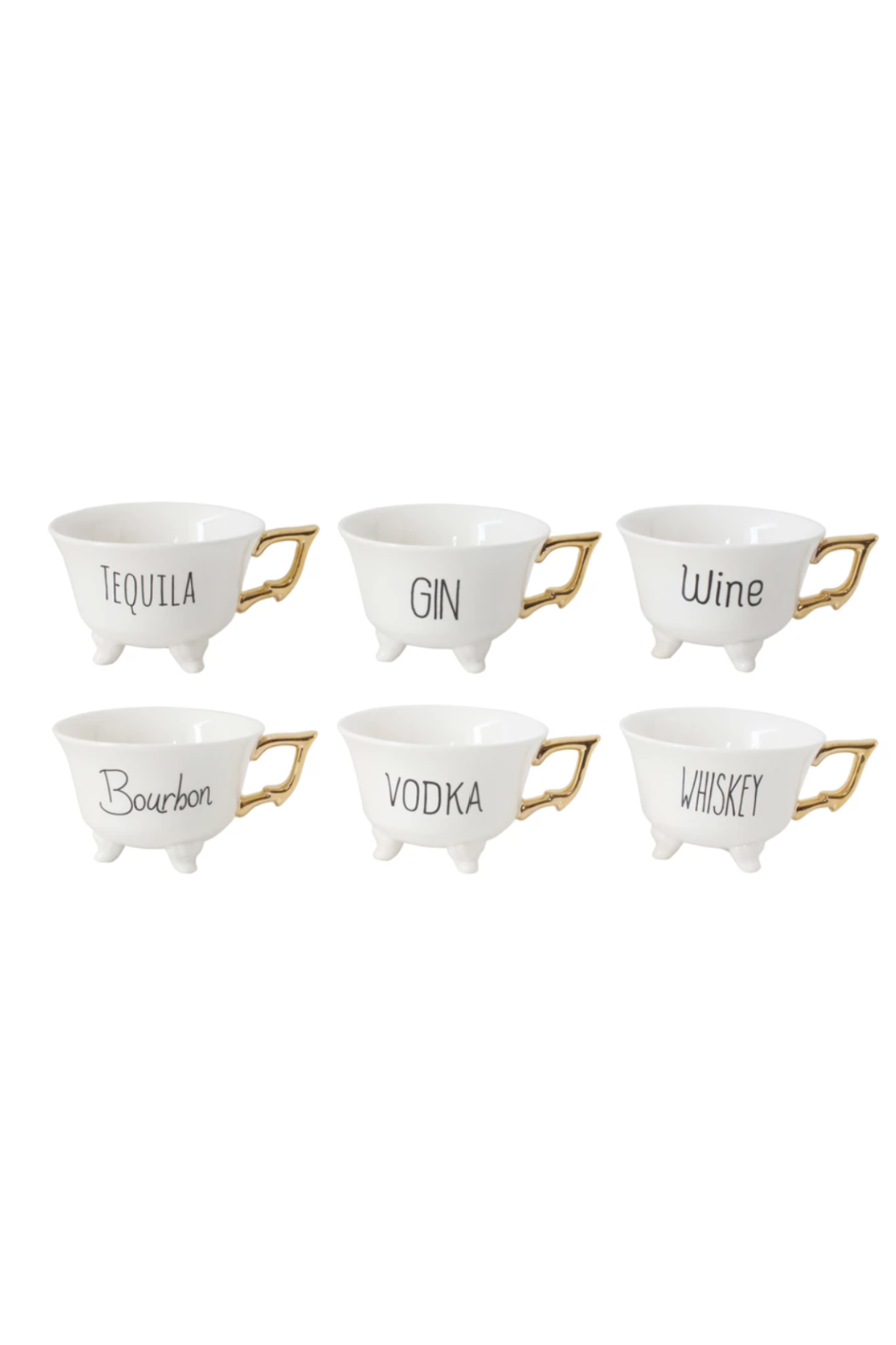 These adorable footed cup with gold electroplating has never made picking your poison more fun!