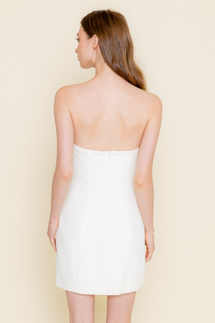 Look stunning and chic with this tube-style mini dress. It features a sparkling sequin bustline that will make you shine bright like a diamond, while the small thigh slit adds a touch of elegance. The hidden back zipper ensures a perfect fit that flatters your curves. Get ready to turn heads and steal the show in this beautiful dress.