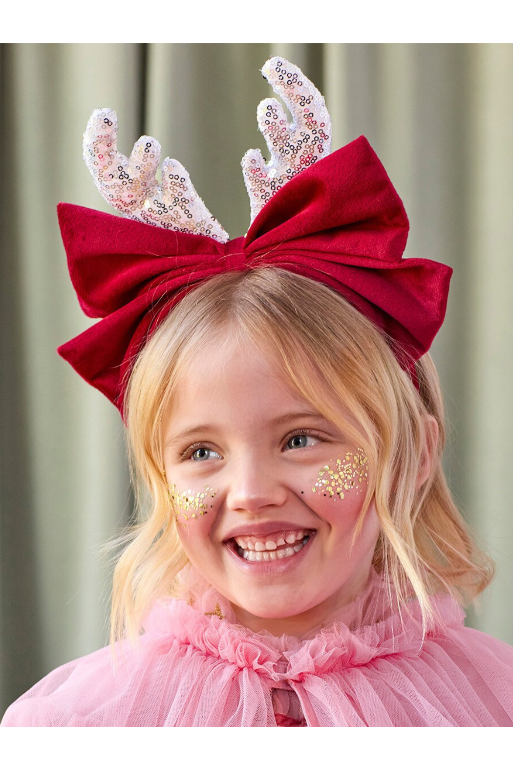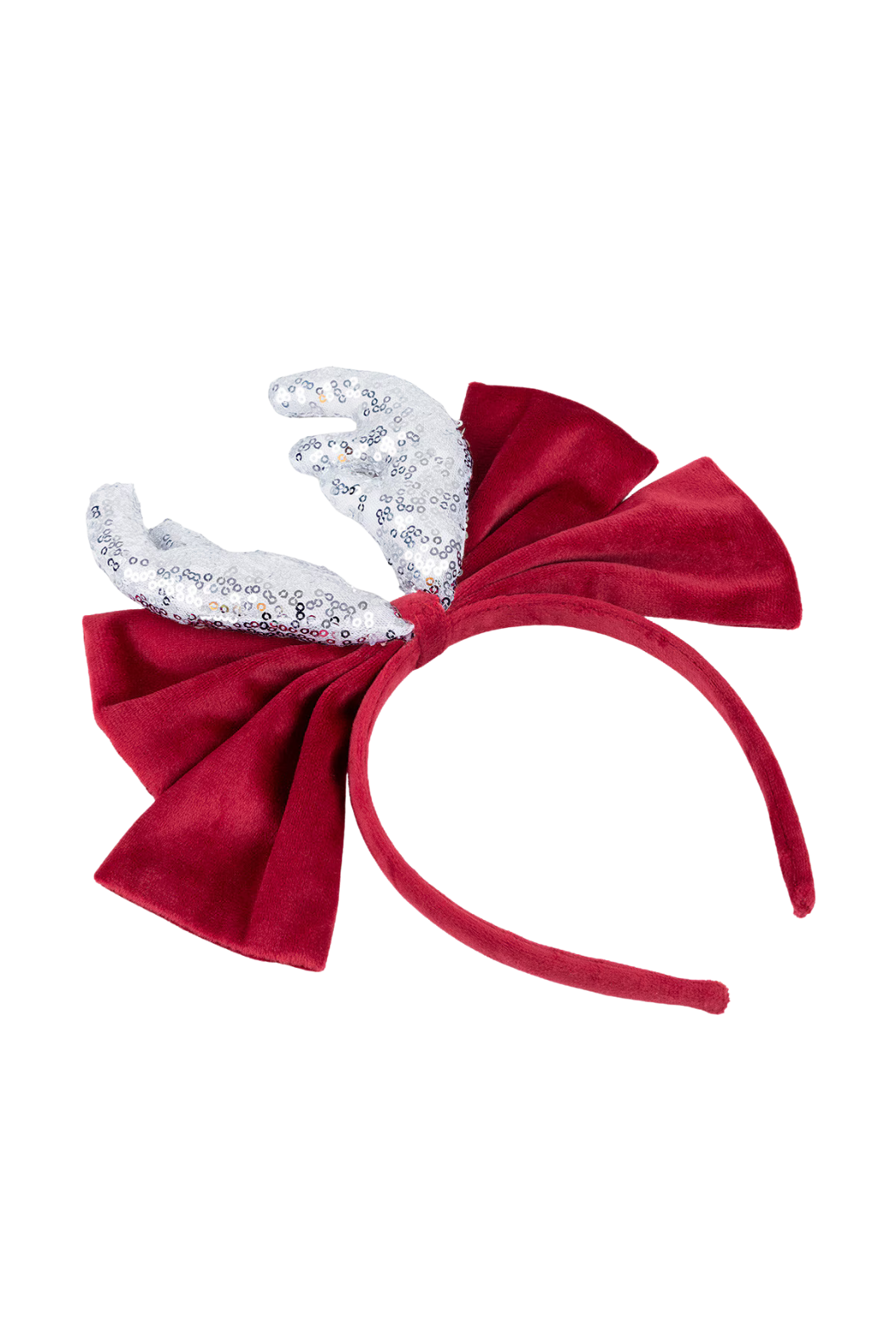 Why wear a plain party hat, when you can have a headband with shimmering antlers and a sumptuous large red velvet bow? Bows are still a must-have accessory of the moment, so pop this on for a stylish and fun look in seconds. Perfect for kids and adults alike, for parties or for dress-up.