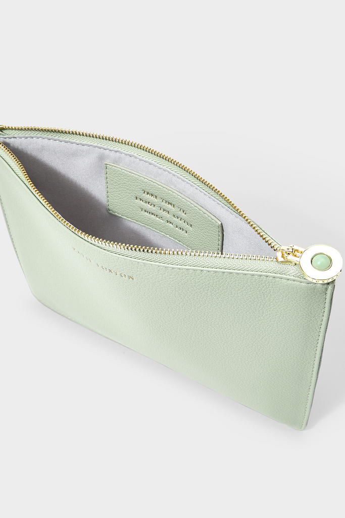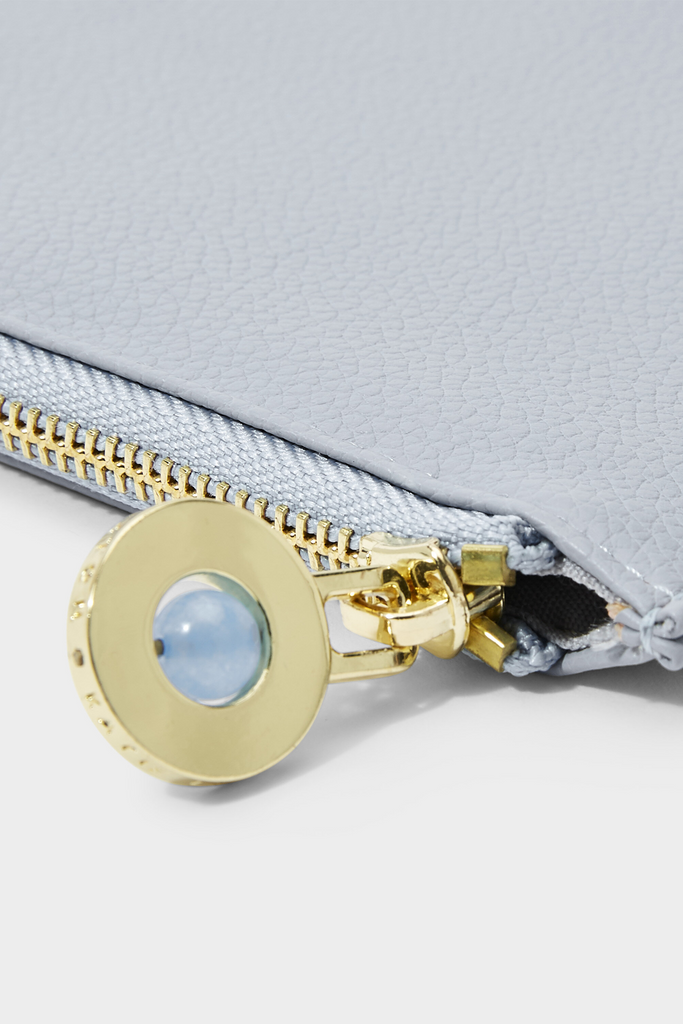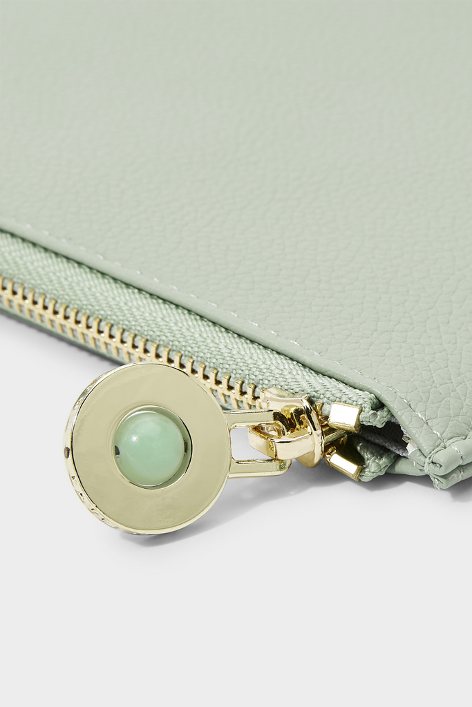 Introducing our brand-new Wellness Secret Message Pouch in multiple colors. This gorgeous style features a real semi-precious aqua crystal stone, gold-tone zip closure and a sweet message hidden inside, so you can say what you need to say in the most stylish way